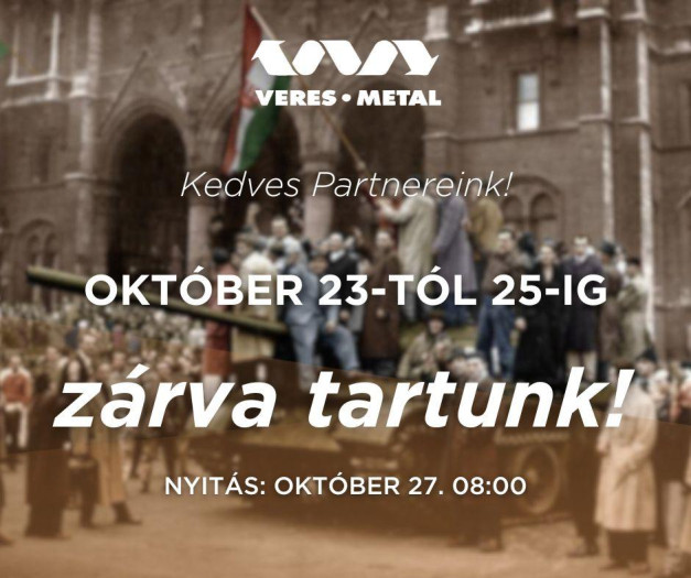Kedves Partnereink! Ez úton tájékoztatjuk, hogy telephelyünk 2023.10.23-án hétfőn ZÁRVA tart! Nyitás:2023.10.24 kedd 8:00 Megértésüket köszönjük!